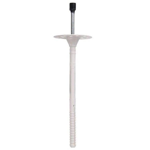 Состоит из дюбеля с двухсегментной распорной частью, имеющего увеличенную прижимную шайбу диаметром 60 мм и гвоздя металлического с нейлоновой термоголовкой высокой ударной прочности.