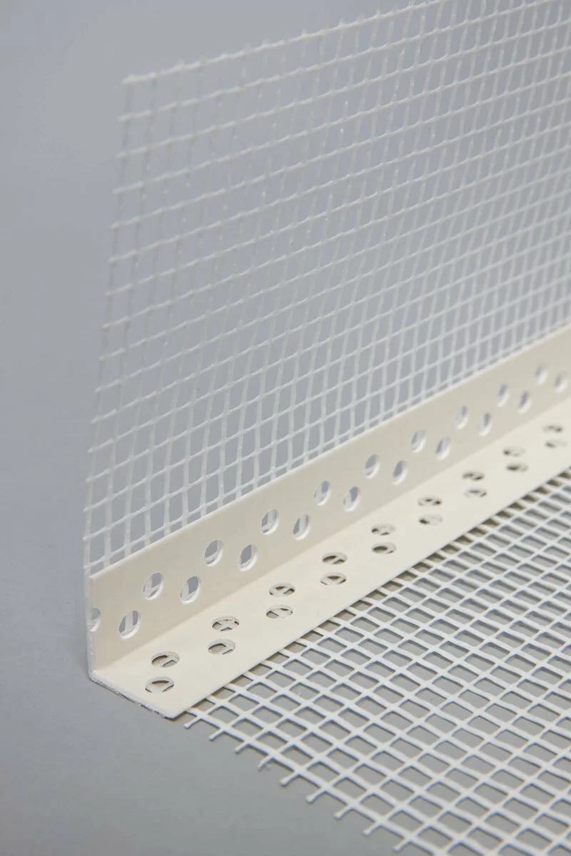Профиль угловой с армирующей сеткой – это погонажное изделие, в состав которого входят склеенные между собой сердечник из ПВХ и армирующая сетка на основе стеклоткани.