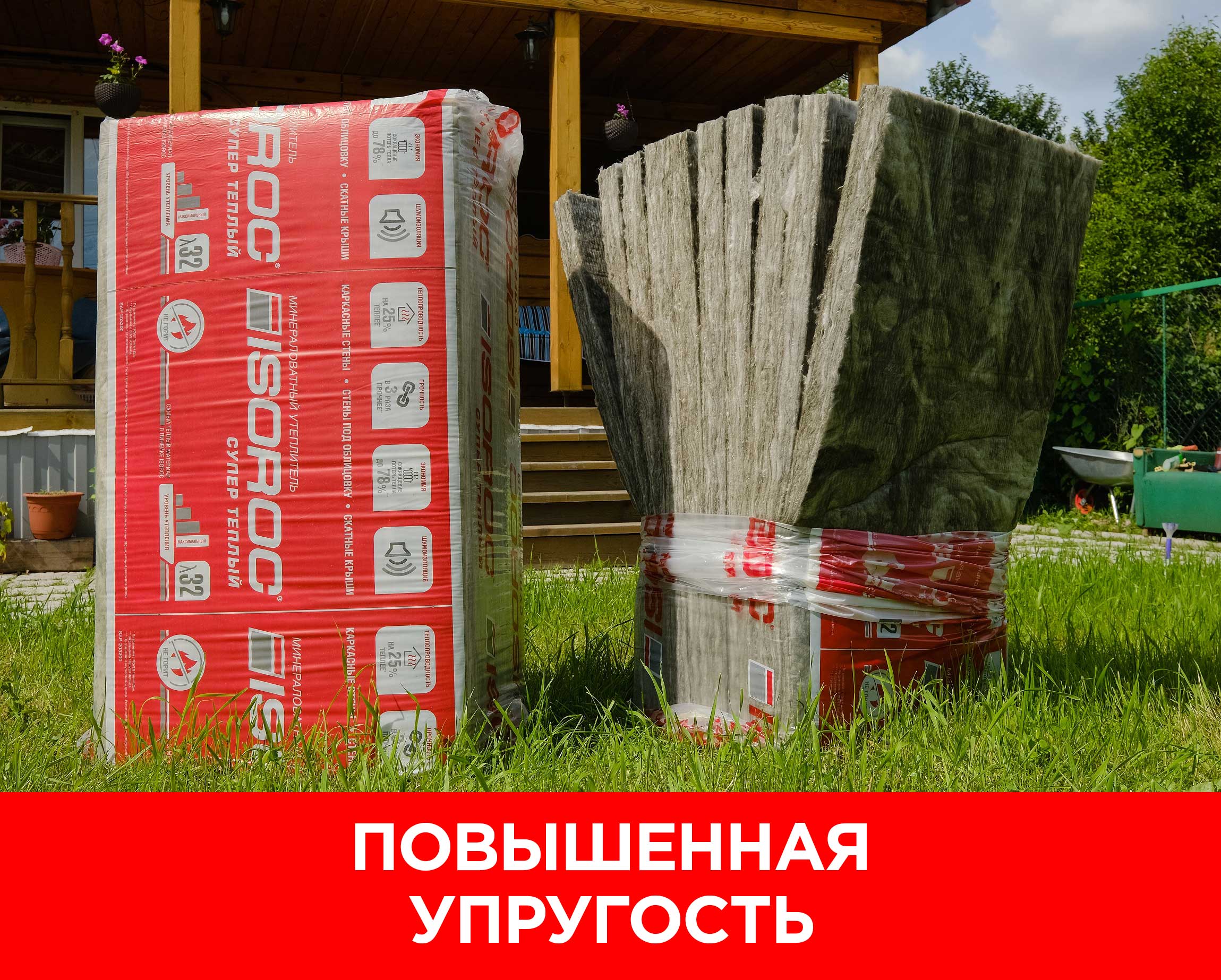 ● Благодаря повышенной упругости утеплитель надежно держится в каркасе без крепежа.