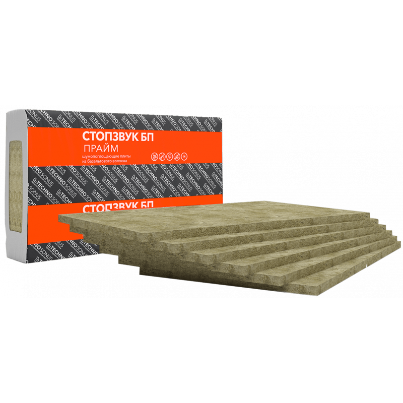 СтопЗвук БП Прайм — это тонкие плиты на основе базальтового волокна высочайшего качества. Размер плиты 1000 х 600 х 27 мм. Небольшая толщина 27 мм и оптимальная плотность 65 кг/м3 придают этому материалу преимущество среди всех аналогов — он оптимально заполняет межпрофильное пространство в шумоизоляционных каркасно-обшивных конструкциях, не увеличивая толщину системы. Высокая механическая прочность и оптимальная плотность 65 кг/м3(которые достигаются большим содержанием природного базальта), а также увеличенная длина базальтовых волокон обеспечивают материалу СтопЗвук БП Прайм высокие акустические характеристики, благодаря которым он может применяться как эффективный шумопоглотитель.